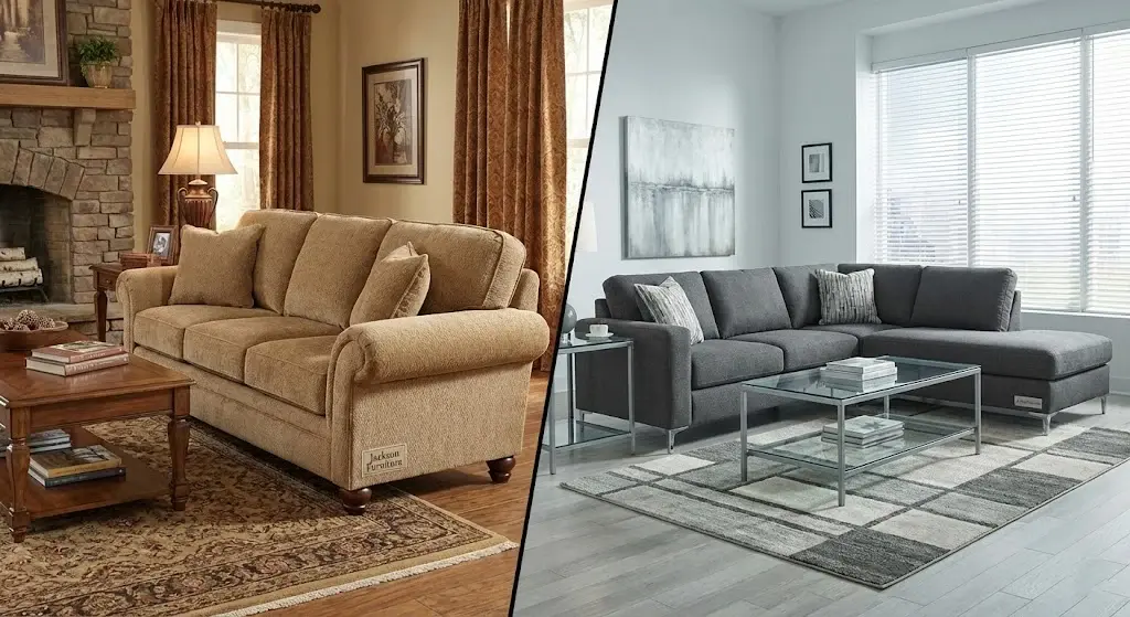 Jackson Furniture is an American-made brand founded in 1933, known for solid wood frames, high-density foam, and classic comfort. Ashley Furniture, founded in 1945, is the world’s largest furniture maker, offering trendy styles at lower prices. Jackson wins on durability; Ashley wins on variety and affordability.