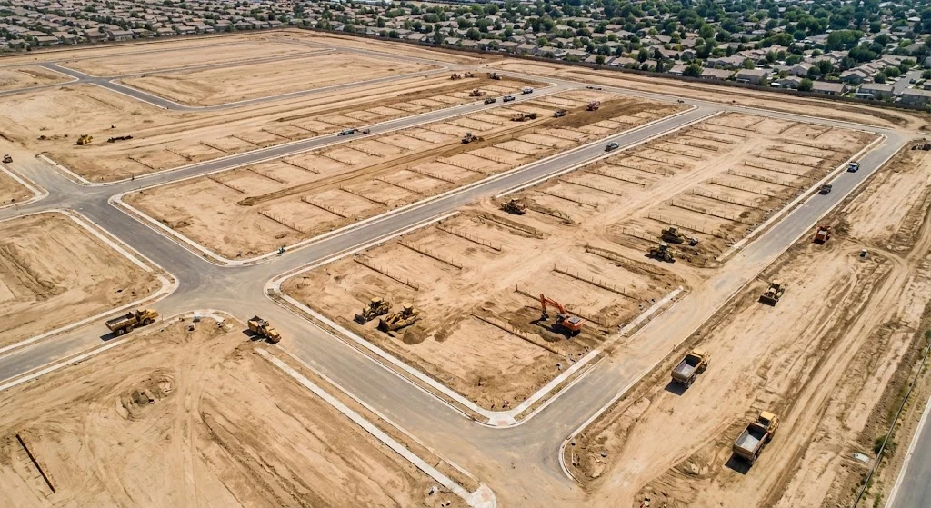 Infrastructure development comes next. Workers install underground utilities like water, sewer, and electrical lines. They build roads, sidewalks, and storm drainage systems. This infrastructure must be completed before building construction begins.